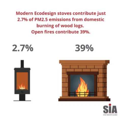 Open fires can produce up to 10 times more particulate emissions than a modern Ecodesign stove. Slowing the transition to cleaner technology risks increasing overall PM2.5 levels rather than reducing them.