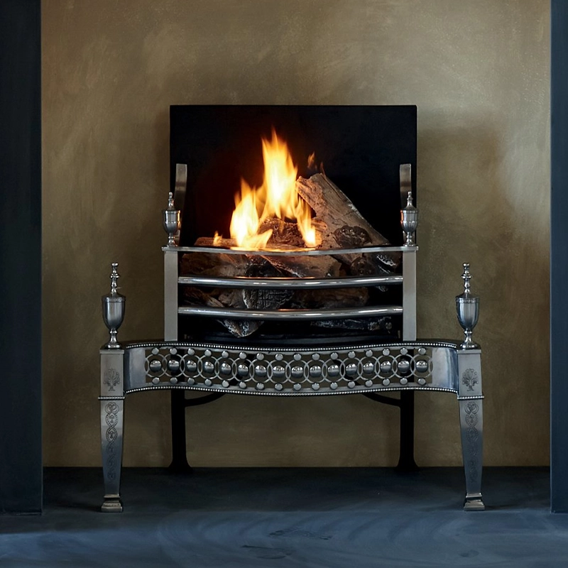 A fire basket is usually a more open fronted fire unit that sits within a chamber or opening and is often chosen for a simpler or more traditional open fire look. They can be wood burning or have a gas or electric fire insert.
