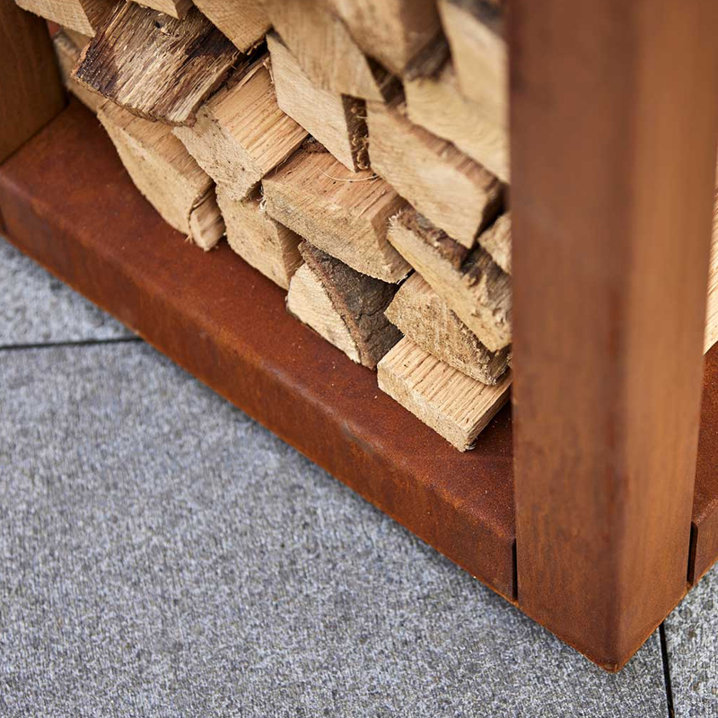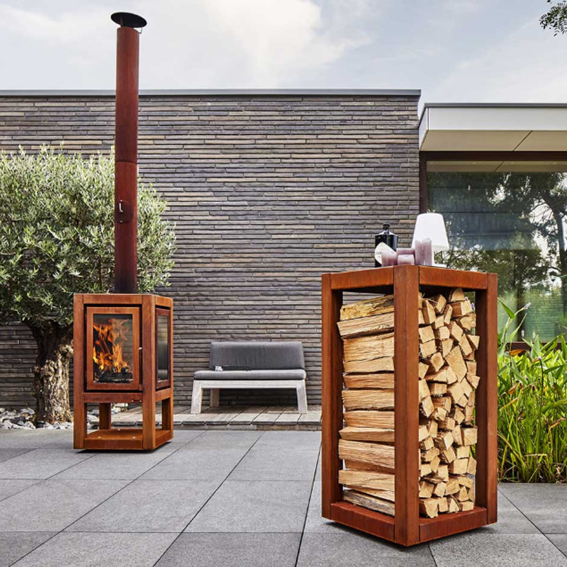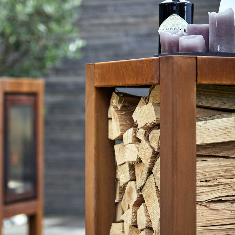 Perfect for pairing with your RB73 outdoor fireplace, the Quarubox ensures your firewood is always within reach – neatly stored and beautifully displayed.