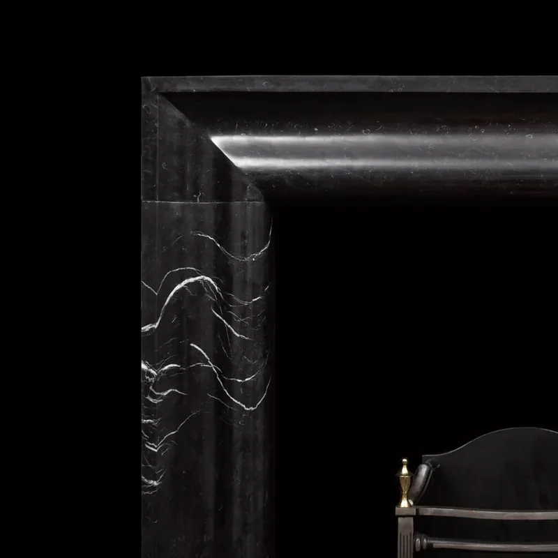 The Bolection Nero Marquina mantel is crafted from premium Nero Marquina marble in a honed finish.