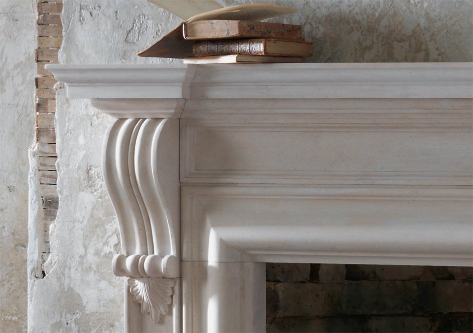 The Chesneys Durham limestone surround is a commanding chimneypiece that marries robust architectural design with exquisite craftsmanship.