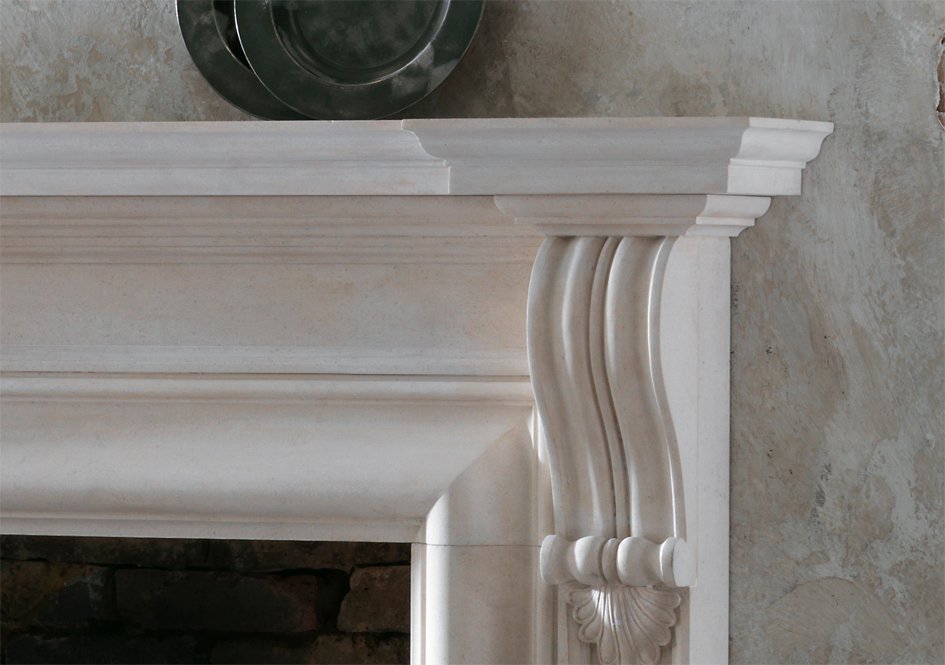 Its use of limestone, panelled pilasters, and intricately carved corbels epitomizes timeless elegance and architectural significance, making it a captivating focal point in any interior space.