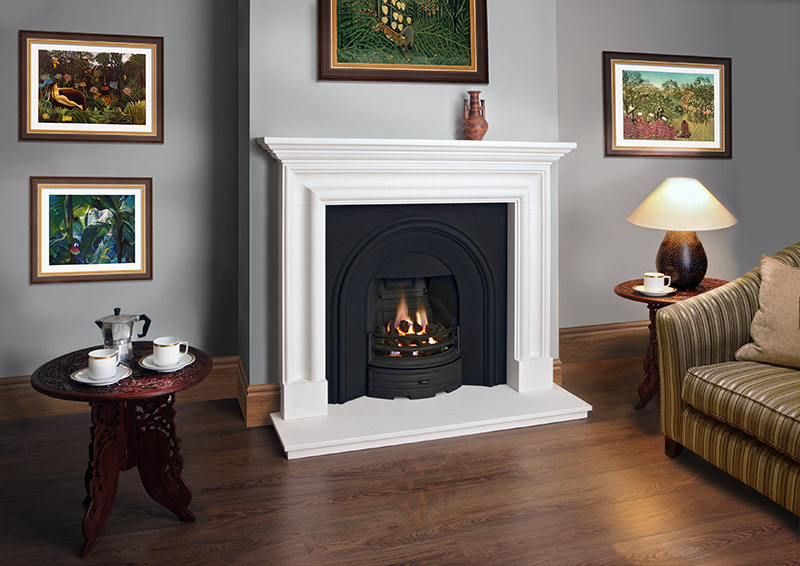 • 51″ Aegean limestone surround: Ideal for smaller living spaces.