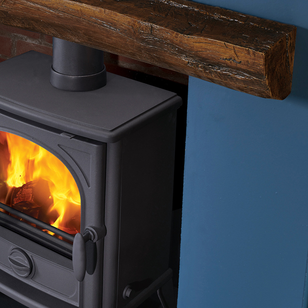 Designed for use above fireplaces or stoves, it offers a realistic timber effect and allows for closer installation to heat sources, blending rustic elegance with modern safety.