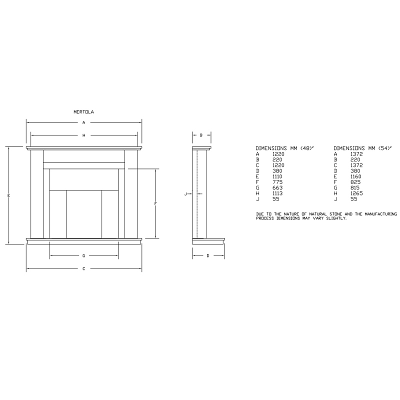 The 54″ version provides a broader, more substantial look, making it ideal for rooms where the fireplace needs to have stronger visual impact. It creates a striking feature wall centrepiece while still maintaining the natural warmth and character that Bella Creme limestone brings.