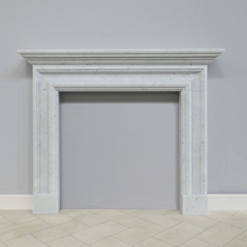 Our Salisbury Bolection mantels are crafted from Bianca Carrara, chosen for its soft veining and elegant appearance, making it ideal for creating a classic yet contemporary look.