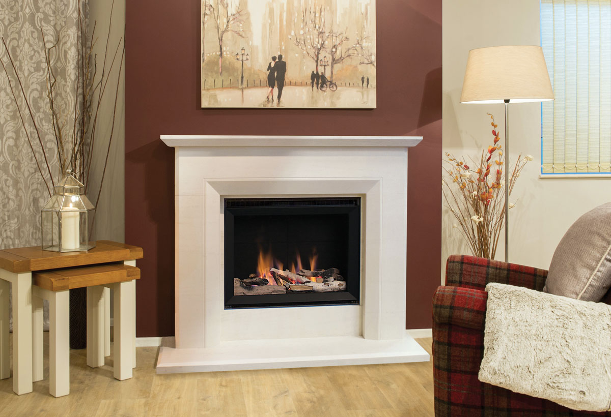 Complementing this exceptional fireplace surround is the Newman Eco View High Efficiency gas fire, showcased to perfection within its confines. This high-performance gas fire not only enhances the visual appeal of the fireplace but also ensures optimal heating efficiency, making it both a stylish and practical choice for modern living spaces.