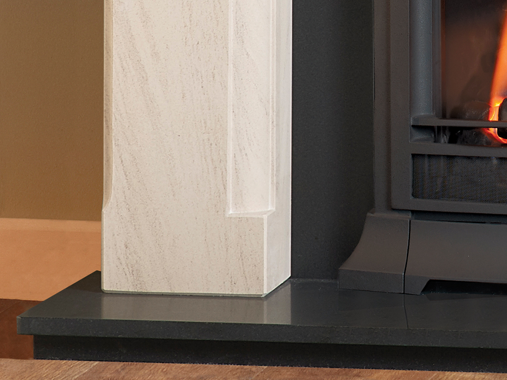The Swinford 48″ Fireplace Suite offers a perfect balance of modern elegance and classic material, making it a standout choice for stylish interiors. Shown in luxurious Portuguese Limestone, it features a sleek Honed Granite Back Panel that adds depth and contrast to the suite.