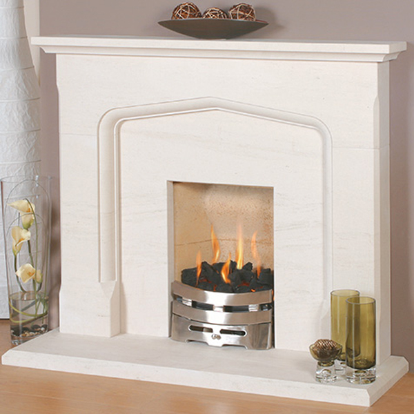Tudor 48″ & 54″ Bella Creme Complete Limestone Fireplace Suite