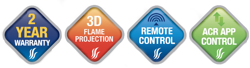 The PR-600E features an ultra-realistic LED flame effect with 64 different display options, including high flame, medium flame, low flame, and glowing embers. It also offers a variety of multi-colored flame effects to suit your mood or décor. The fireplace comes with a programmable remote control, and for added convenience, it can be operated through the ACR app on your smartphone or tablet. The flame effect can also be used independently from the heat, allowing you to enjoy a cosy atmosphere all year round.