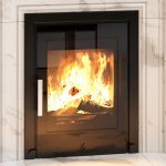 Finished with a sleek black glass door and available with either a 3- or 4-sided frame, the T400 ECO-BG integrates seamlessly into a variety of interiors. It can sit neatly within an existing hearth or be installed higher as a contemporary hole-in-the-wall feature. The wide viewing window provides a clean, uninterrupted flame picture, supported by a powerful airwash system that keeps the glass clear during use.