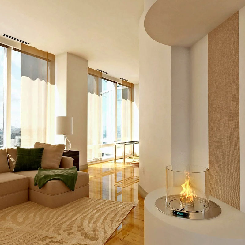 The Decoflame Denver Round F6 is a compact, electronically controlled bioethanol burner designed for recessed installations where space, precision, and aesthetics matter. Its circular form opens up unique design possibilities, making it ideal for contemporary interiors, feature furniture, and bespoke architectural projects that require a discreet yet luxurious fire solution.