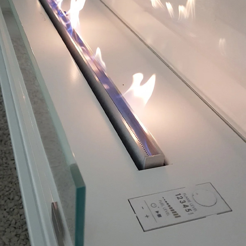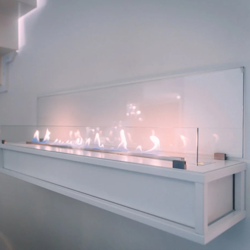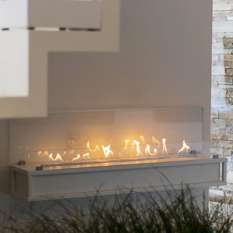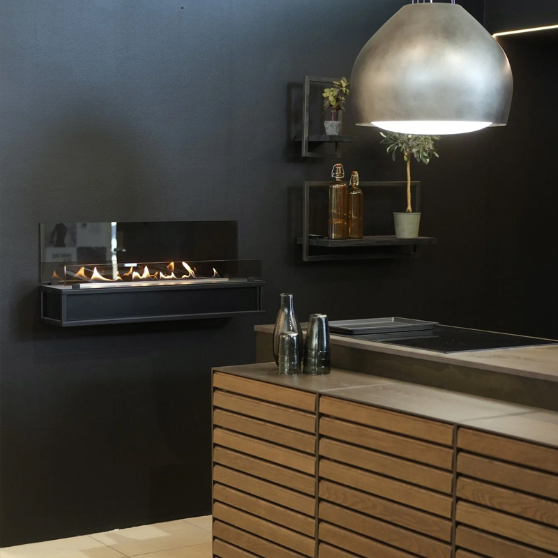 Unlike built-in fireplaces, the Torino requires no recess or structural preparation and can be mounted directly onto the wall. This 930mm model is fitted with an electronic Denver F6 burner, offering six adjustable flame levels and intuitive control via the integrated display, included remote control, or the Decoflame mobile app. The black finish enhances contrast and depth, allowing the flame to stand out while maintaining a clean, minimalist aesthetic. Clean-burning bioethanol ensures real flames without a chimney, flue, or gas connection.