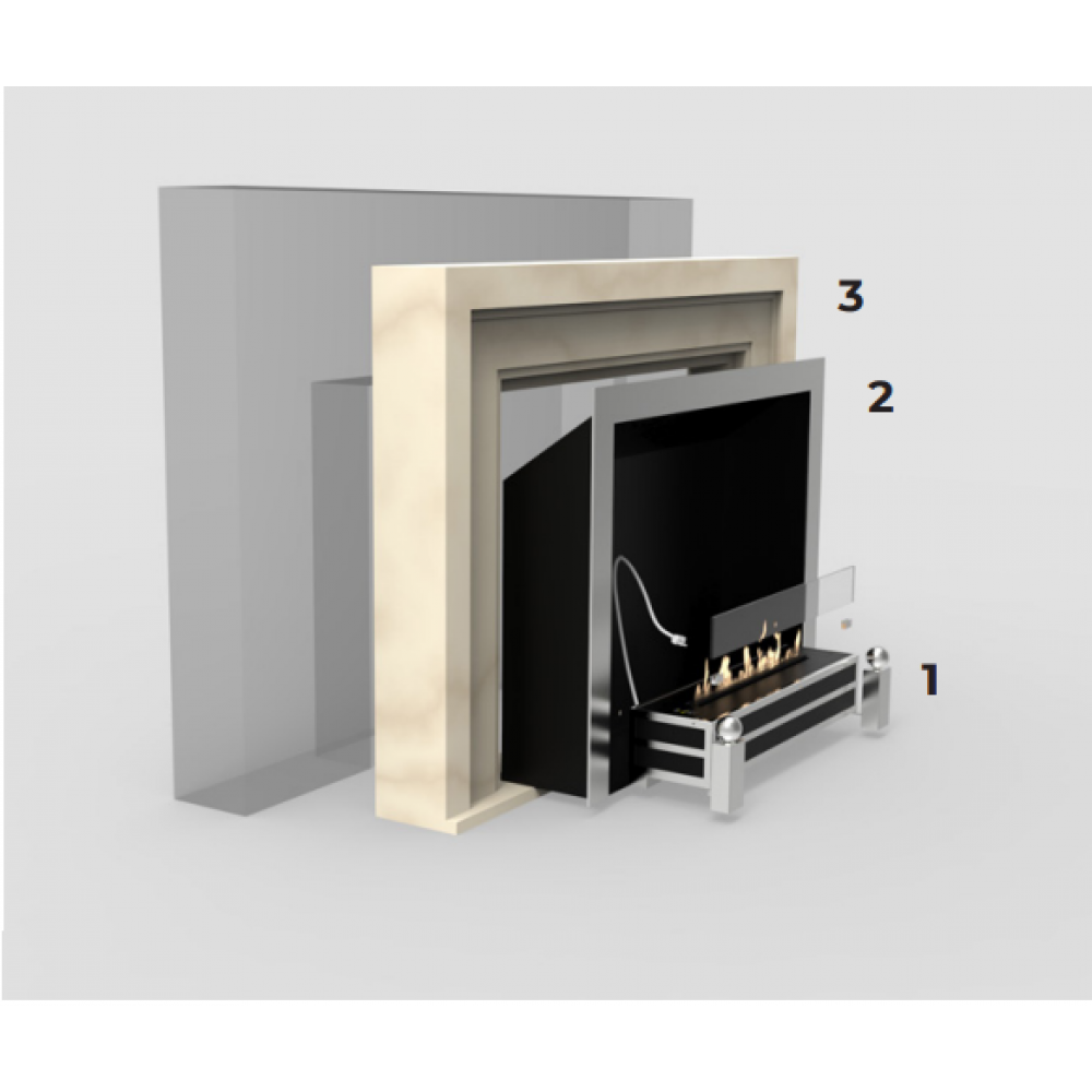 The Decoflame Westminster is a built-in, front-facing bioethanol fireplace designed for wall integration, featuring an optional decorative frame that evokes the charm of a traditional English fireplace. With its elegant proportions and classic detailing, Westminster brings timeless character to interiors that favour warmth, heritage, and refined design.