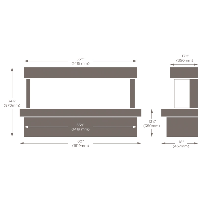 Dimensions can be adjusted depending on the fire selected, ensuring the final installation remains proportionate and well integrated within the space. This makes the Stratford suitable for a range of applications, from standard fireplace settings to larger feature walls and media wall designs.