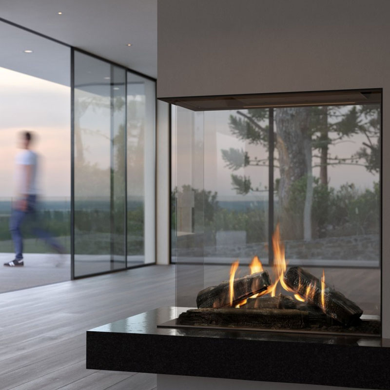 - Three sided viewing design – Clear flame visibility from multiple angles.