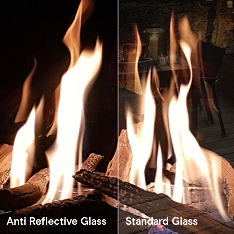 Finished in black steel as standard and supplied with a remote control, the fireplace can be customised with optional black reflective panels, anti-reflective glass, convection grills, an access door, and the Invisimesh safety screen. These options allow you to balance design, safety, and performance to suit your project.