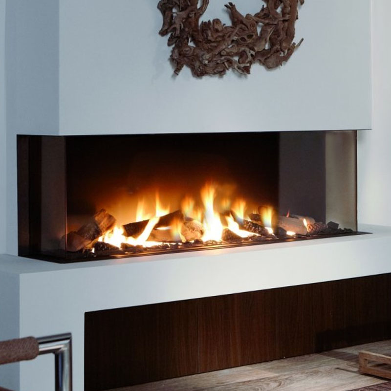 With a heat output ranging from 3.2 to 16.5 kW, the Trisore 140 operates on natural gas (G20/G25) and propane (G31), offering installation versatility. Its 90% efficiency ensures optimal energy use while maintaining a vivid flame display. Optional features such as black reflective panels, anti-reflective glass, Powerfan, and smart control via app or remote enhance both functionality and visual appeal.
