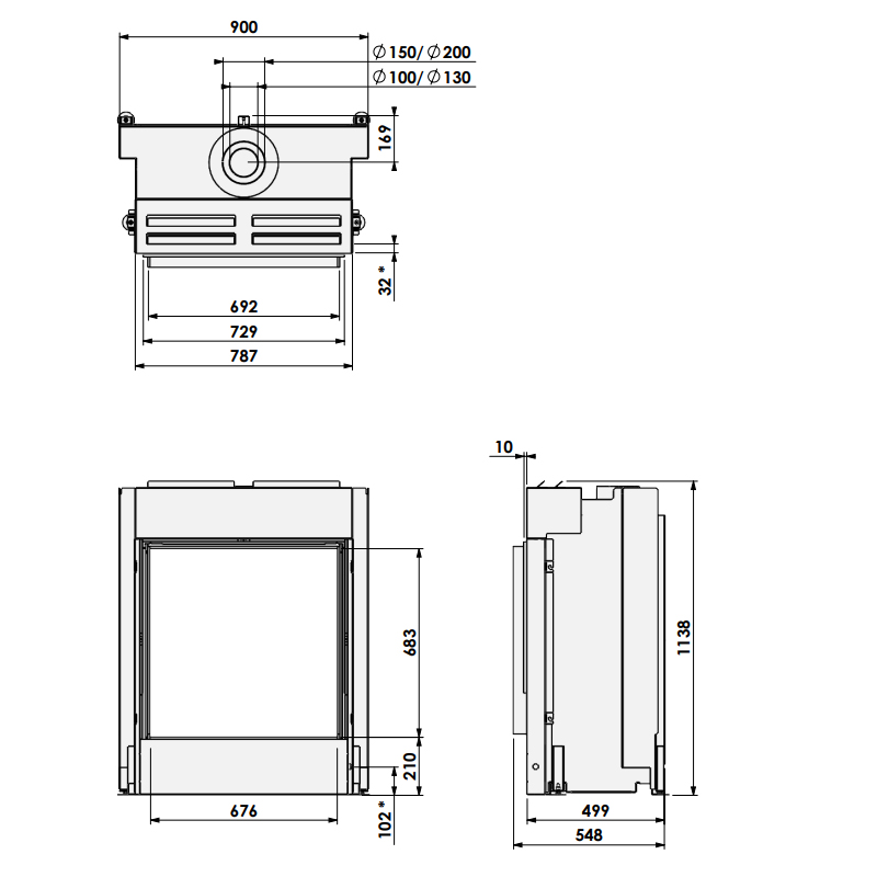 - Smoke Gas Exit / Air Intake: Ø100-150mm or Ø130-200mm