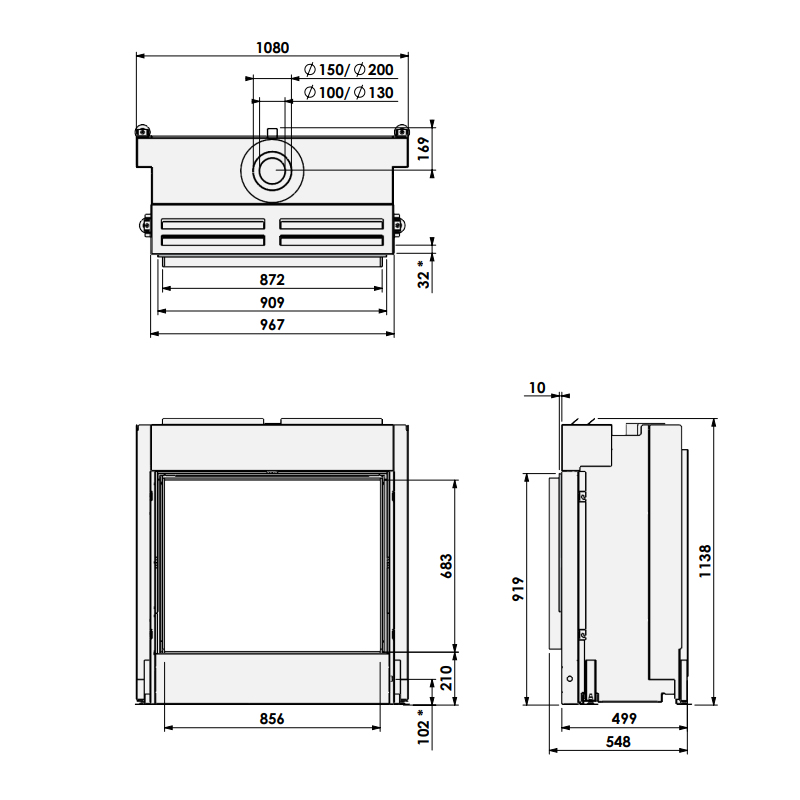 - Smoke Gas Exit / Air Intake: Ø100-150mm or Ø130-200mm