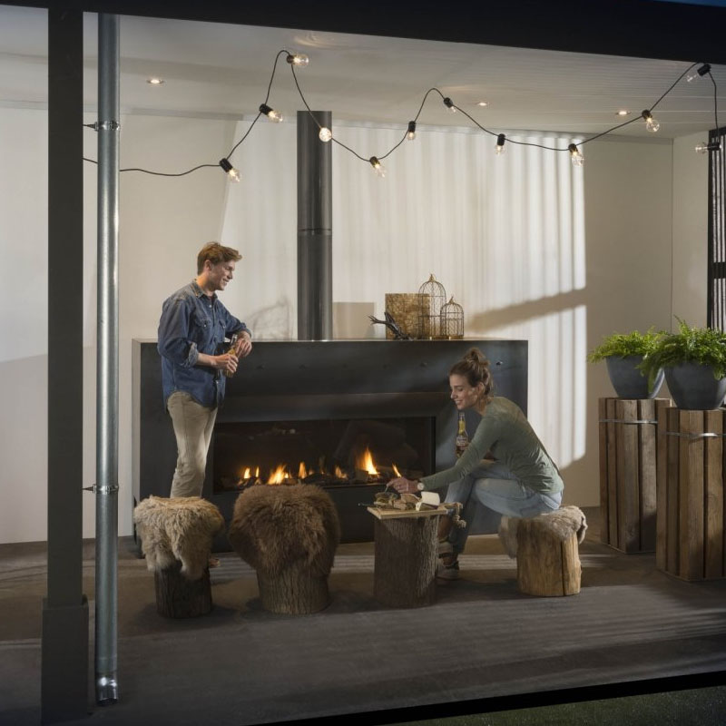 Finished in black steel as standard, the Modore 140 Outdoor can be customised with optional black reflective panels to intensify the flame effect. Control comes as standard via remote, with optional upgrades including app operation, home automation integration, wall switch control and the Powerfan system, offering maximum flexibility in installation and everyday use.