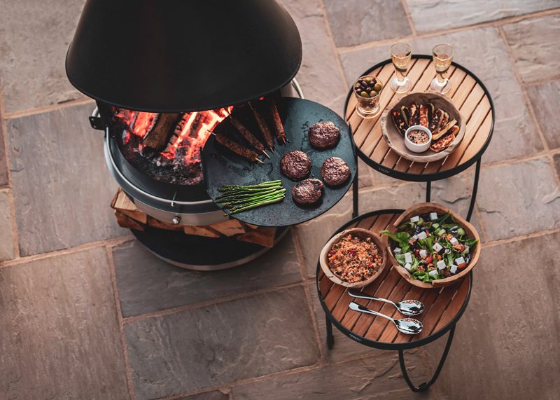Optional cooking accessories and movable castors add versatility for both heating and grilling.