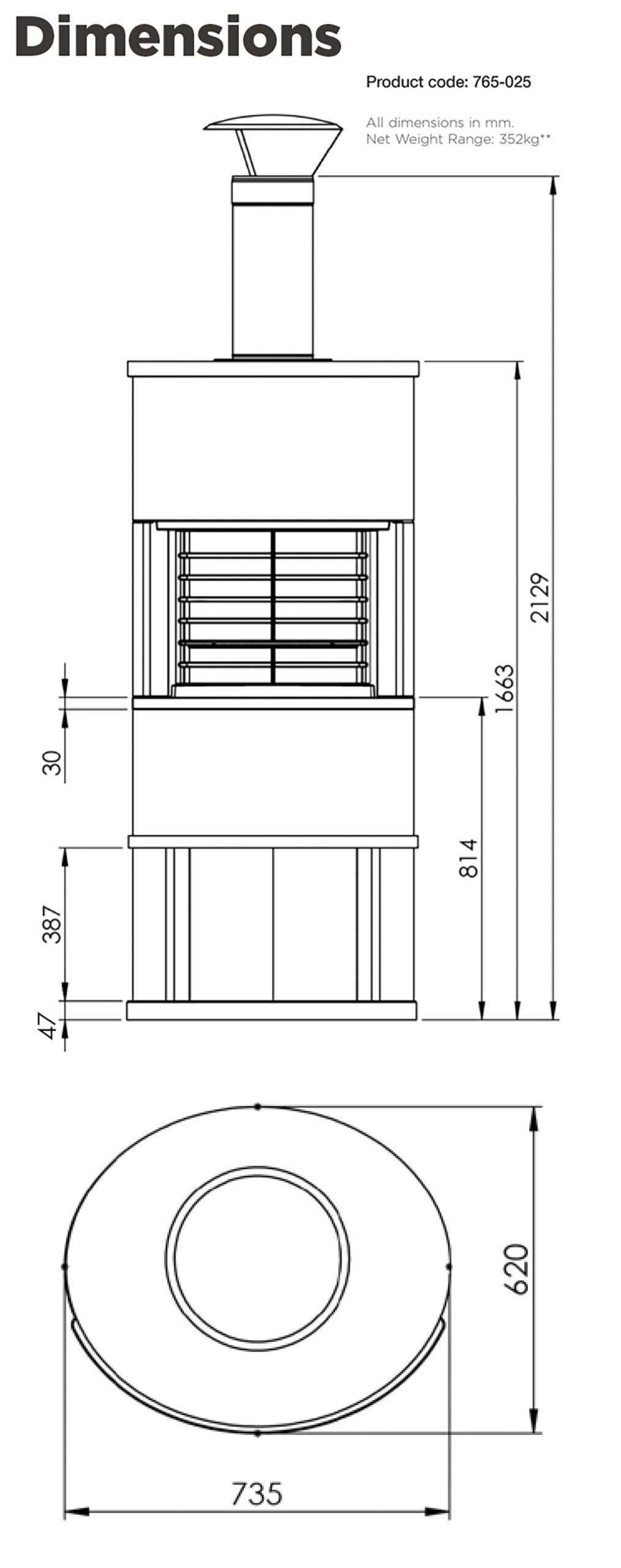 Use the Roma as a alfresco cooking grill and use nearby fuel from the log storage located below. Showcasing a beautiful cylindrical design and long flue system that will move all smoke and debris up and away from the area.