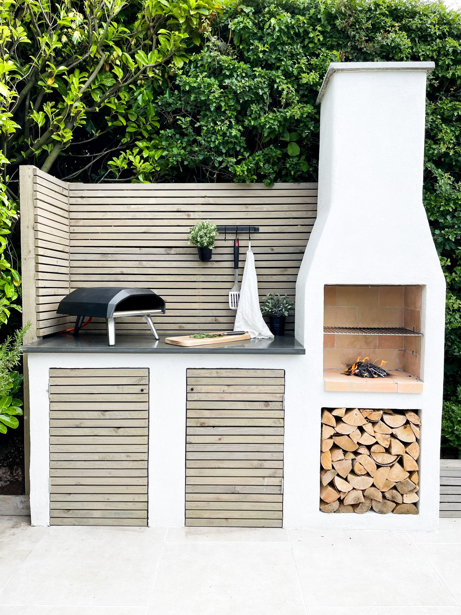 Inspired by Kirsty from Instagram, she used the Isokern Garden Fireplace 500 model and turned it into a functional outdoor kitchen that also looks amazing too with it’s wooden slatted panelling.