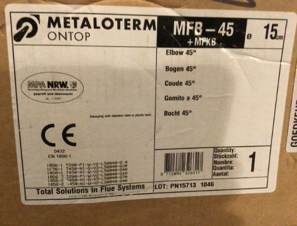 Metaloterm Elbow 150mm x 45 Degrees
