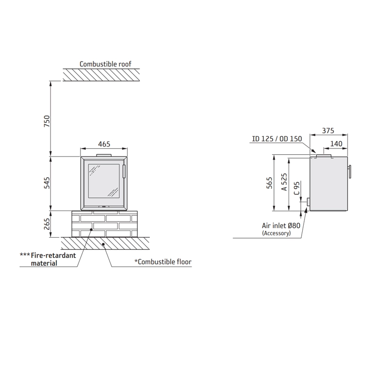 Designed for connection via a top flue outlet. Its compact size (545 mm height, 465 mm width, 375 mm depth) allows for flexible installation in a variety of settings. Weighing 75 kg, it is relatively straightforward to position compared to larger stoves, while still requiring appropriate hearth and clearance considerations.