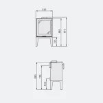 An optional wood compartment can be added beneath the stove, improving both usability and visual balance by raising the firebox and keeping logs within easy reach.