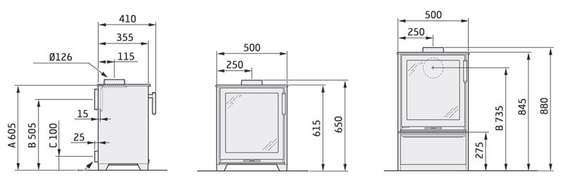 One of the Contura 210’s standout features is its versatility in placement. This model is designed to fit seamlessly with a variety of bases and flooring types. You can mount the stove on an optional wood compartment, either with or without a door, for convenient wood storage that keeps everything you need close at hand.