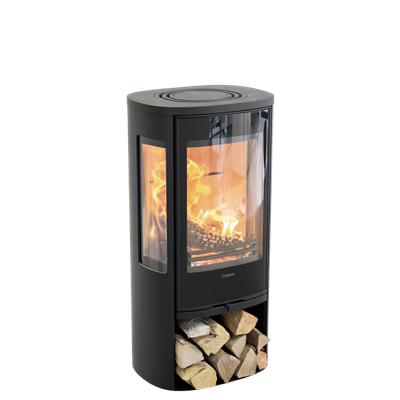 - Log compartment beneath the stove