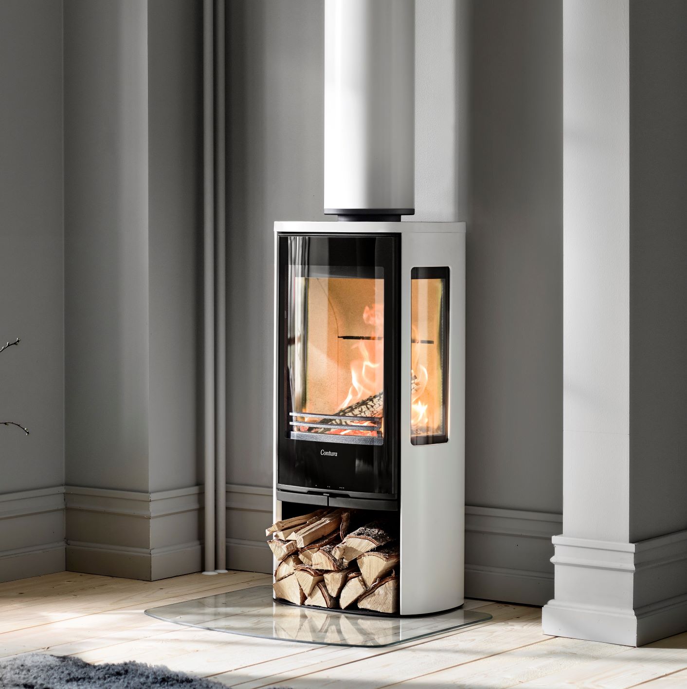The Contura 856G Style is well suited to modern interiors, open-plan living spaces and renovation projects where the appearance of the fire is a key part of the room design. It is a strong option for customers who want a stove with a lighter visual feel, broad flame visibility and efficient day-to-day wood burning performance.