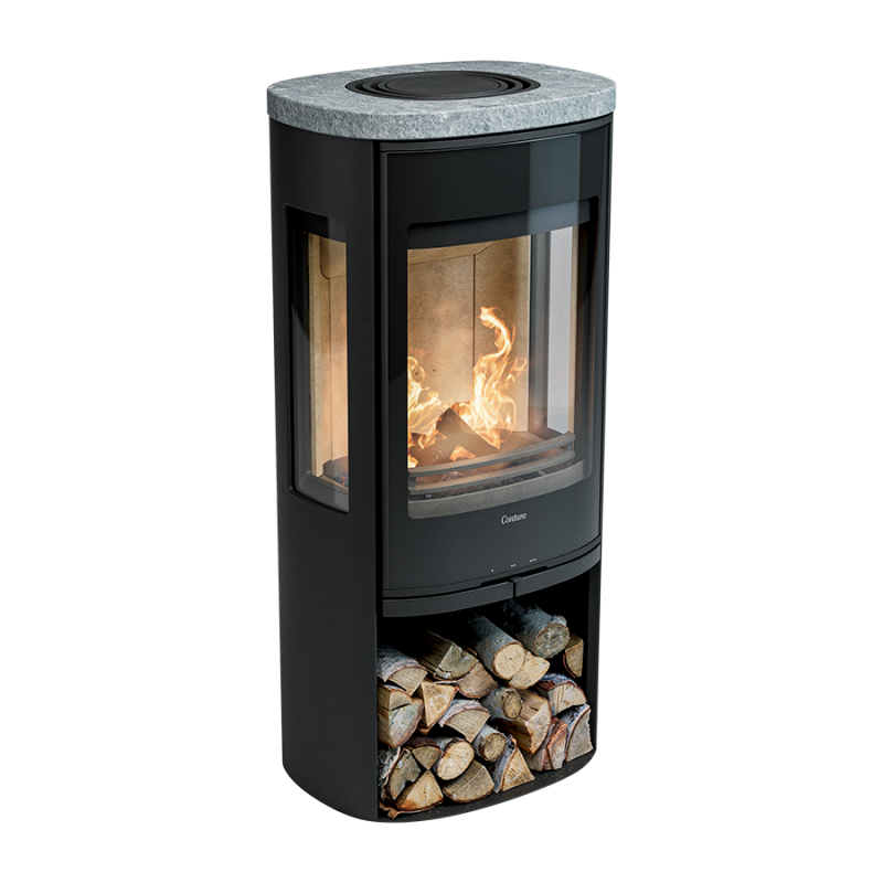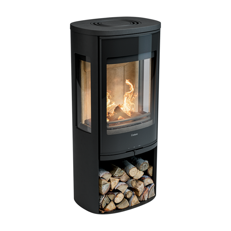 This stove brings together practical output and a lighter visual finish. The full glass door gives the front a cleaner, more modern appearance than a cast iron door model, while the side glass panels help widen the flame picture across the room. That makes the stove feel more visually active in use without increasing its footprint. Available in black or white, and with a choice of black painted aluminium top or black soapstone top, it can be adapted more easily to different room styles. The log compartment beneath the stove also adds a practical storage area for keeping fuel close to hand.