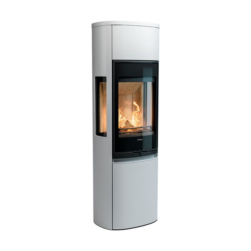 This model is built to make the fire more visible from both the front and the sides. The tall firebox lifts the flames higher off the ground, improving the main sightline to the fire and helping the stove feel more prominent in the room. The generous side glass panels widen that flame view further, while the full glass door gives the front a cleaner, more modern appearance. Available in black or white, and with a choice of black painted aluminium top or black soapstone top, the stove can be better matched to a range of interior styles. A log compartment beneath the stove also adds practical storage without increasing the overall footprint.