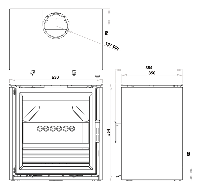 Installation flexibility is supported with a 5-inch (127mm) flue outlet, configurable for top or rear exit depending on your setup. The stove is also compatible with an external air supply, making it suitable for modern airtight homes and improving overall efficiency.