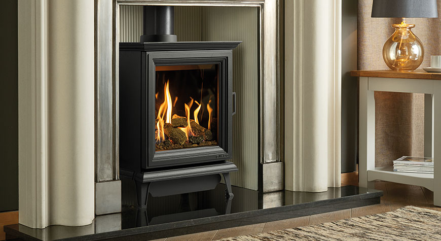 The Gazco Sheraton has a rich and deep flame effect which is enhanced by the glass lining and ceramic logs. The gas stove takes full advantage of the flames with its reflective interior panelling which give a more fuller atmosphere.