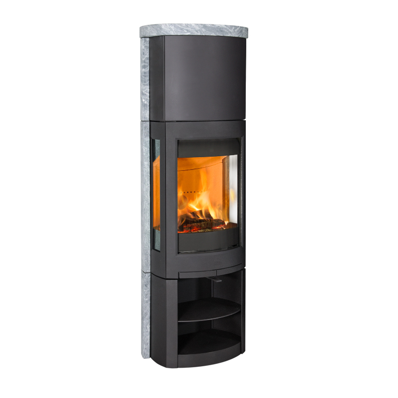 With the 370 Series, Jøtul redefined stove design and won the Red Dot; Best of the best. It quickly became Europe’s most popular stove. With the F 370 Advance tall freestanding wood burning stove we do it again. The view of the fire is even greater and the easy to use air control ensures clean glass. Welcome to the future. Jøtul F 377 Advance includes elegant and heat-retaining décor from soapstone. It also features a practical storage space in the base with a detachable shelf for increased flexibility.