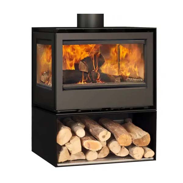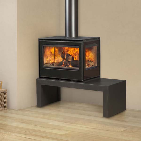 The Rocal Habit 76 Lid is available as a hearth mounted stove as standard and can be installed with an optional logstore, or choice of stove bench.