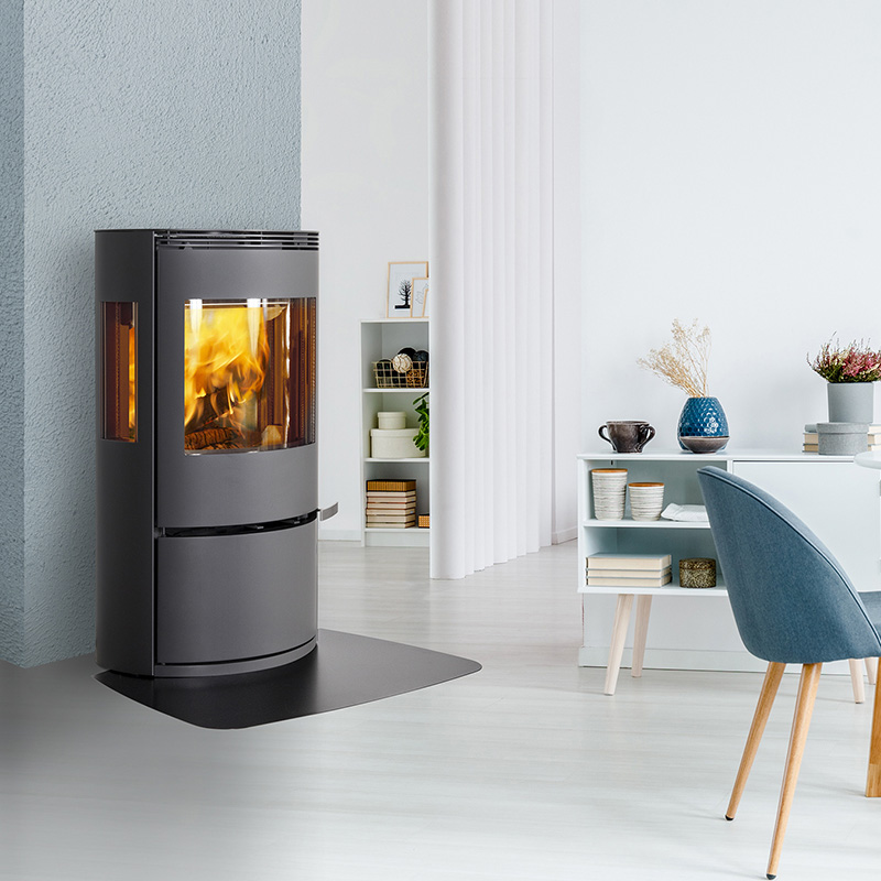 This wood burner features a rounded 3-sided design with clean and minimal styling. Customise your ILD 10 with a log compartment or storage door.