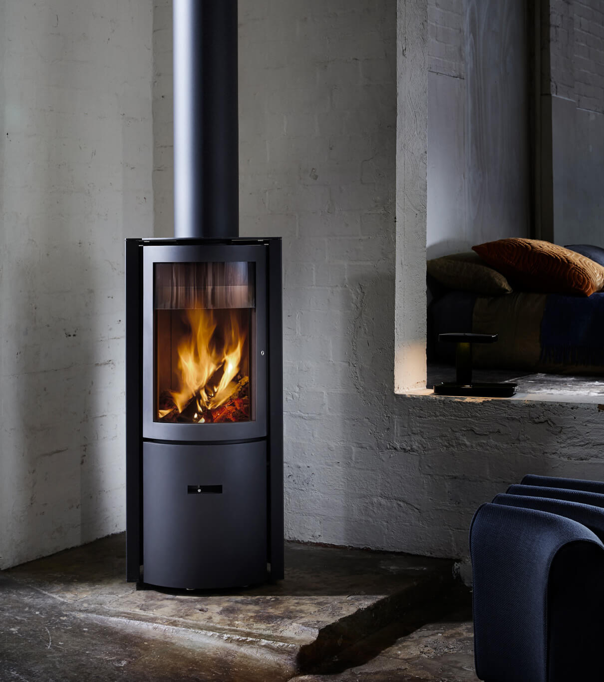 The Stûv 30-compact wood burning stove is a compact cylindrical stove designed to deliver flexible, efficient heating with a strong emphasis on usability and fire control. Created as the compact version of the Stûv 30, it is particularly suited to low-energy homes and compact dwellings, while still offering an adjustable heat output from 3 to 9 kW.