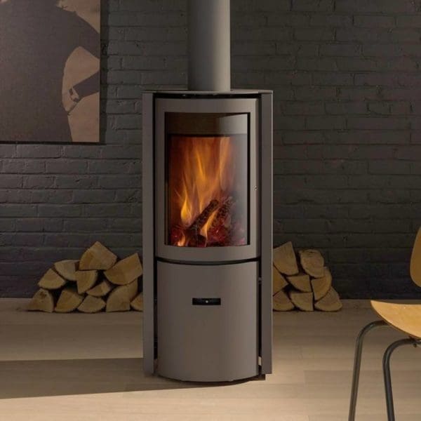 What makes this stove stand out is its 3-door system. By rotating the drum, you can bring the door you need to the front of the stove opening. The glass door gives a wide, uninterrupted view of the flames while supporting safety, output and efficiency. The solid door is designed to slow the fire and optimise performance, while the loading door allows safer refuelling. This gives the stove a different level of flexibility from a fixed single-door design, as the fire can be managed in different ways depending on whether the priority is flame view, burn control or refuelling.