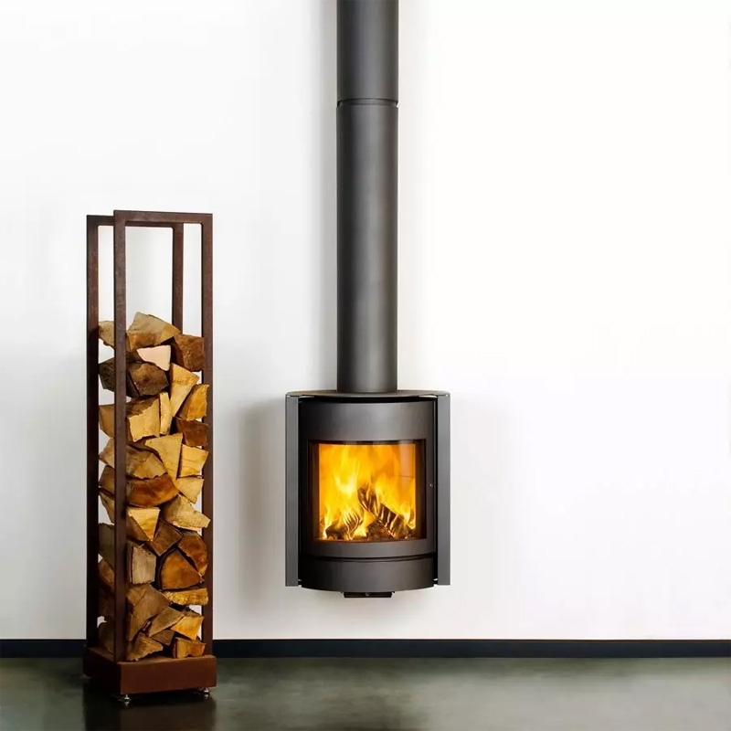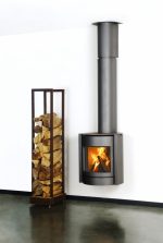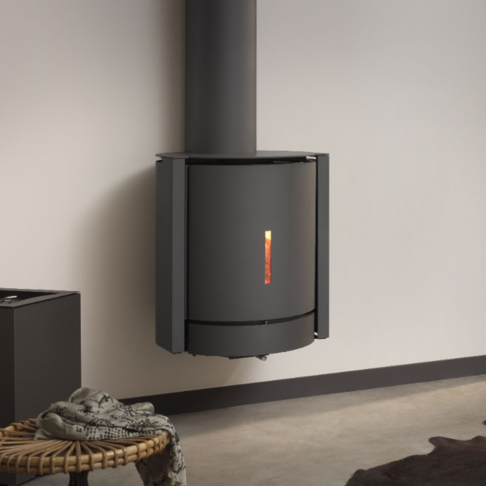 Suspended above the floor, this stove creates a striking architectural focal point while freeing up valuable space beneath. The integrated convection column captures heat from the flue and redistributes it into the room, improving overall efficiency and comfort rather than losing heat through the chimney.
