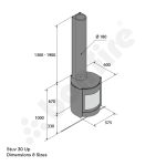 Requires installation on a non combustible wall with sufficient structural support and a non combustible floor beneath. Compatible with a Ø180mm flue, with connection possible from the top or rear. External air supply can be ducted from below or behind the appliance. Minimum clearance to combustible materials at the sides is 10 cm. Designed to operate with chimney draught between 2000 and 4000 Pa for optimal performance.